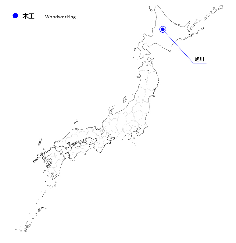 - 近隣の東川町や東神楽町などを加えた旭川市は、豊かな森林資源に恵まれた木製家具や木工クラフトの産地である。